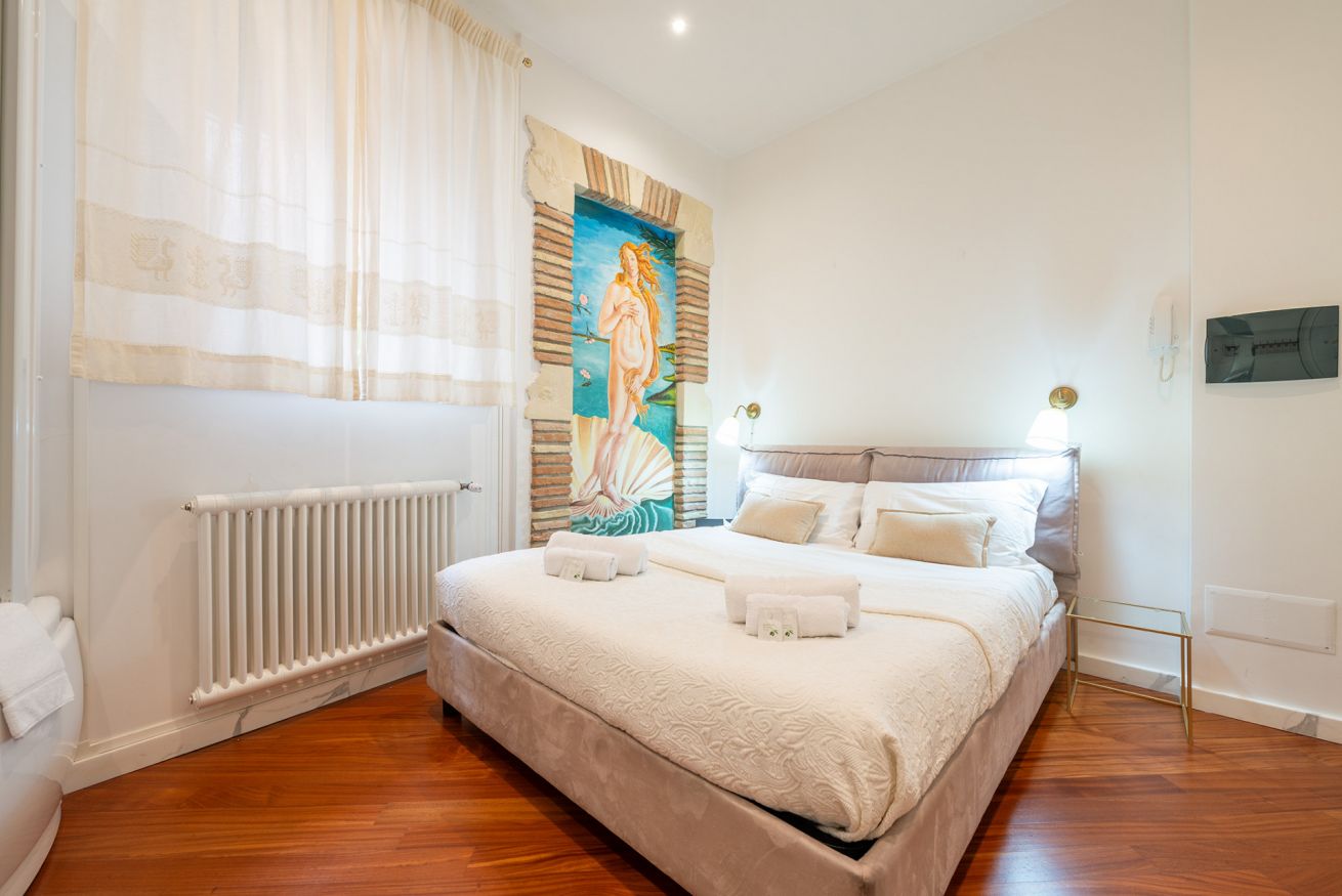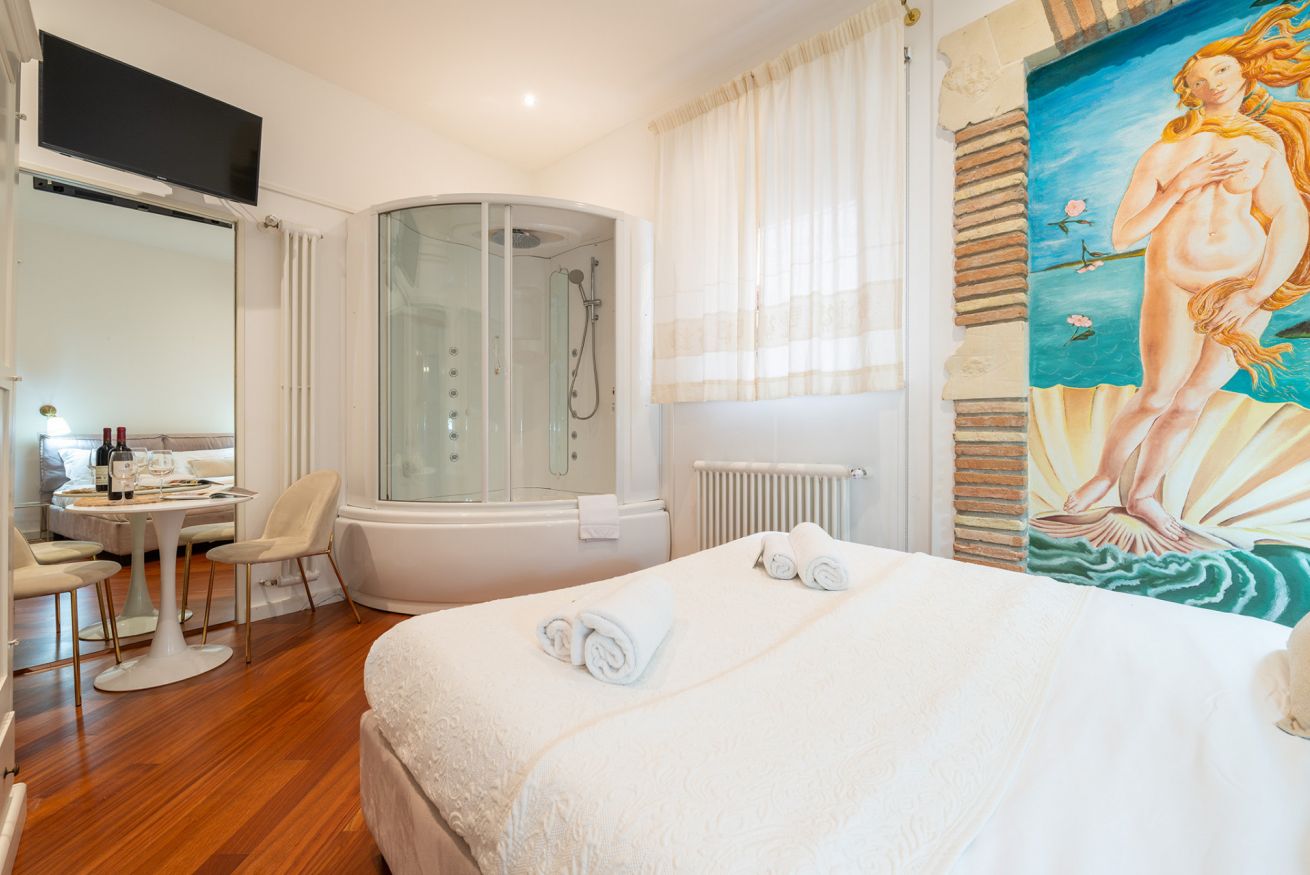 Elegante camera matrimoniale con bagno privato e vasca idromassaggio, ideale per coppie. Wi Fi free! Luminosa e silenziosa, recentemente ristrutturata .