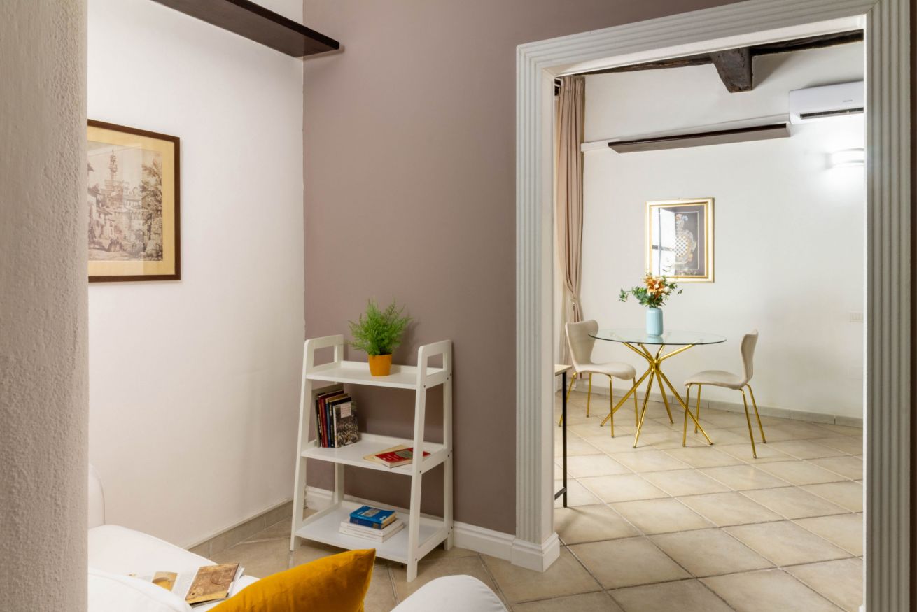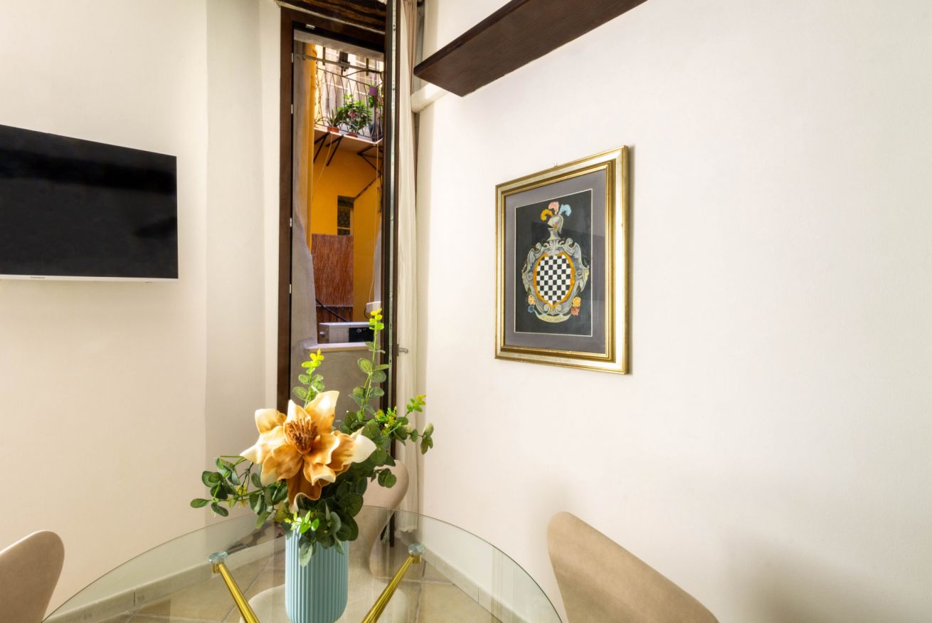 Gli elementi originali in legno antico, splendidamente restaurati, raccontano la storia del palazzo e si fondono armoniosamente con i comfort moderni. Un luogo perfetto per chi cerca il fascino del passato senza rinunciare alla comodità di oggi.